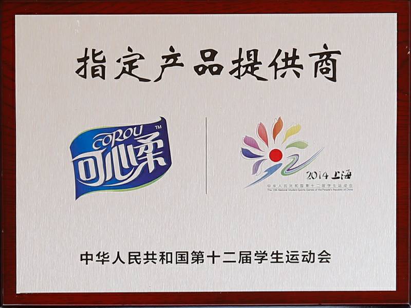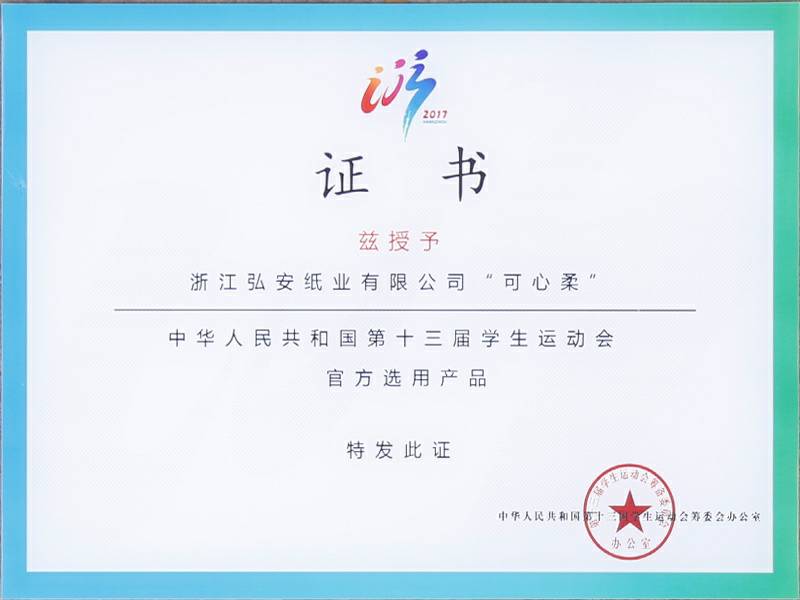 2017年9月4日中华人民共和国第十三届学生运动会在浙江杭州举行,可心柔携手中国邮政、中国平安、娃哈哈、京东校园、吉利汽车等知名企业品牌亮相大会。作为本次大会的12家合作单位之一,浙江米兰体育官网登录入口-米兰(中国)纸业有限公司参加了发布会,并接受了官方选用产品的授牌。
